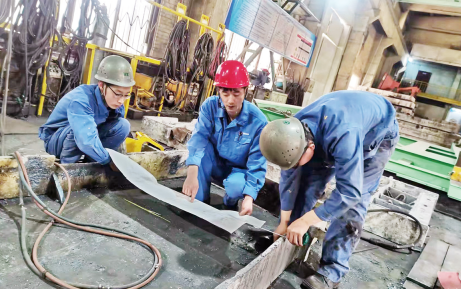 承揽北区连铸机遮热板的批量制作生产任务时的情景,赵晓旋至今还记忆犹新,他兴致勃勃地告诉记者:“遮热板采用的是异种钢镍20为主要钢结构材料,我们根据其特点选择焊材,必须严格按照图纸施工,及时跟踪了解产品使用特性,并根据现场要求对其进行结构调整。那个活儿在操作过程中需要调整几个尺寸,有一处由原来1050×100方形改为1100×850椭圆形,有一处由850×100方形改为900×130圆形,如此不仅可以减轻自身重量,还能增强遮热板与包盖的精密性。活儿看着简单,可是没有两下子是拿不下来的。每个弧度都得精准,手就得当尺子用。”完美的“改尺”,让众人惊羡。后来为了方便工作,企业专门订购了一台专用卷板机,解放了人工。但是赵晓旋的精湛技艺至今仍被同事们津津乐道。