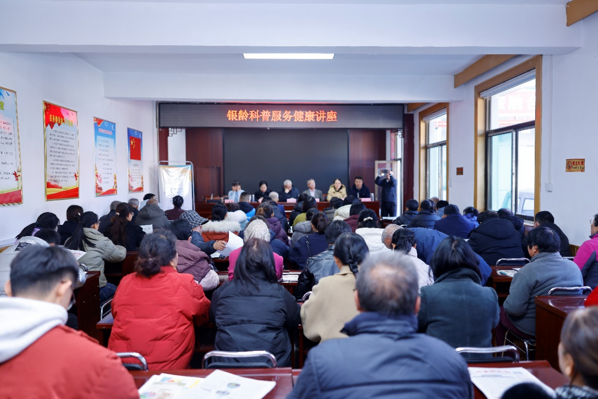 12月3日下午,医疗专家团队在桐峪镇人民政府大会议室为来自各村镇的60余名村医及老年村民开展了一场银龄科普服务健康讲座。专家围绕农村常见的高血压、糖尿病、骨关节病等高发慢性病规范化管理、用药指导、中医药适宜技术等内容展开讲解。他们结合临床案例及健康传播经验,用通俗的语言将复杂的医学知识拆解阐述,系统剖析了科学防治策略及诊疗难点。整场讲座内容生动丰富、反响热烈,对引导农村老年群体树立主动管理、积极预防的科学健康意识具有重要意义。